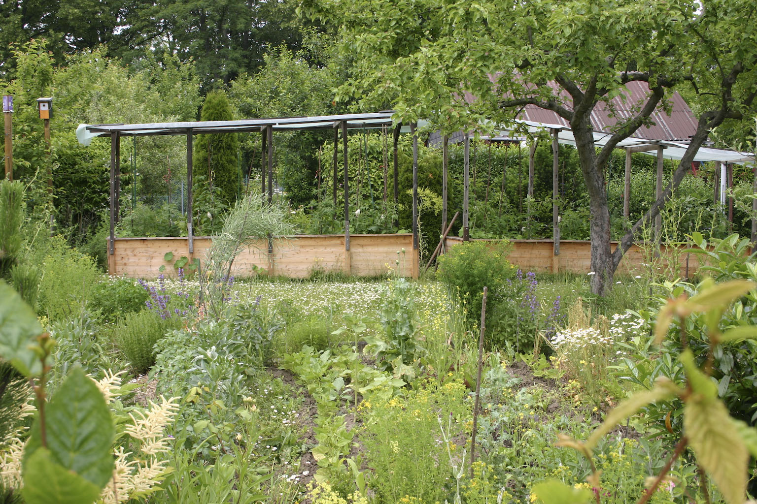 Tomaten brauchen einen sonnigen, luftigen Platz, Feuchtigkeit bleibt dann nicht so lange an der Pflanze. Um noch mehr Nässe von den Tomatenpflanzen fern zu halten, haben wir die Hochbeete überdacht.